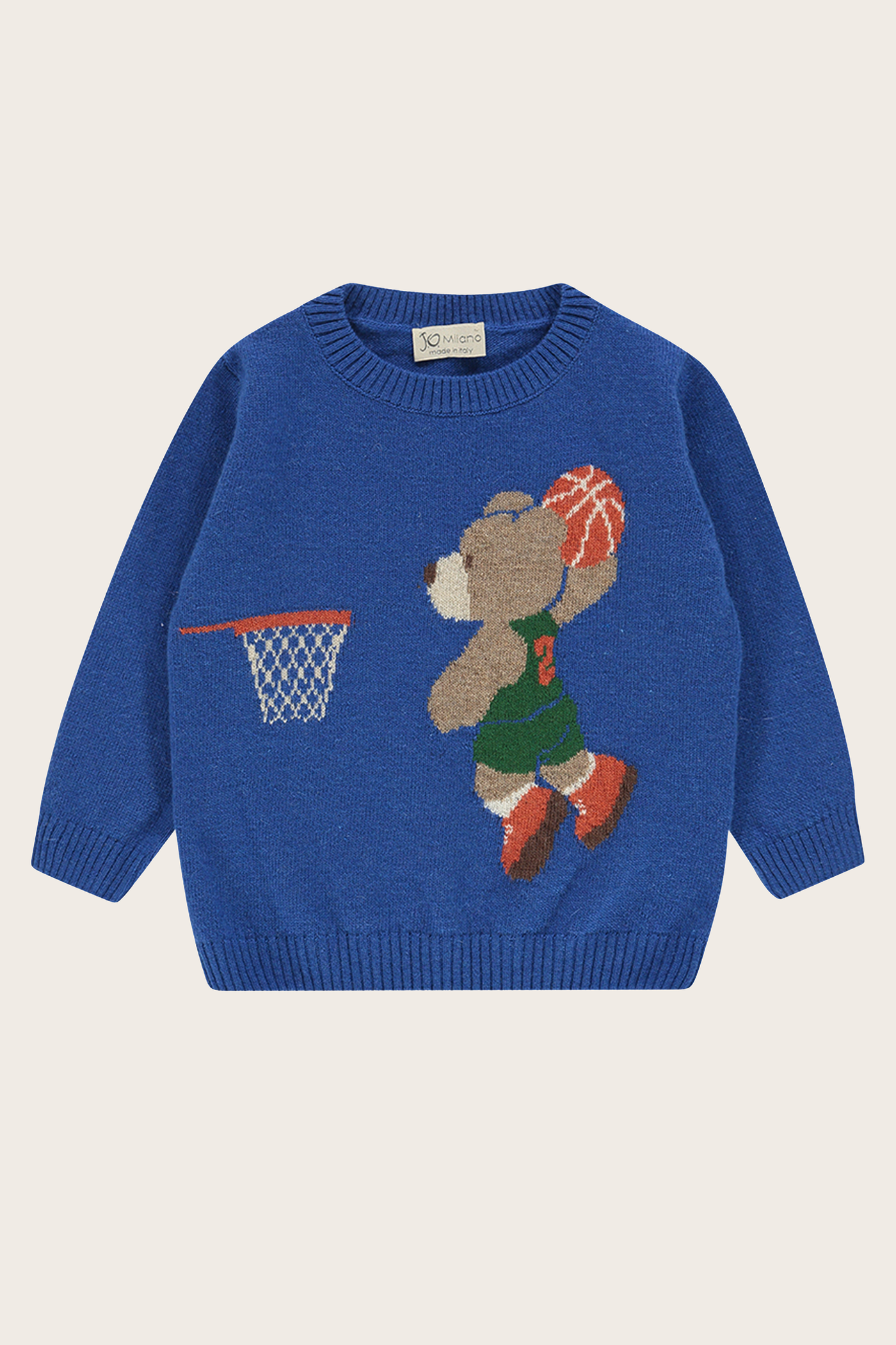 A charming knit by JO Milano, crafted in a soft merino wool and cashmere blend, designed for warmth, comfort and everyday elegance. Featuring a teddy playing basketball, this beautifully made sweater adds a playful yet refined touch to little wardrobes. Perfect for layering on cooler days.