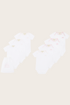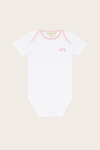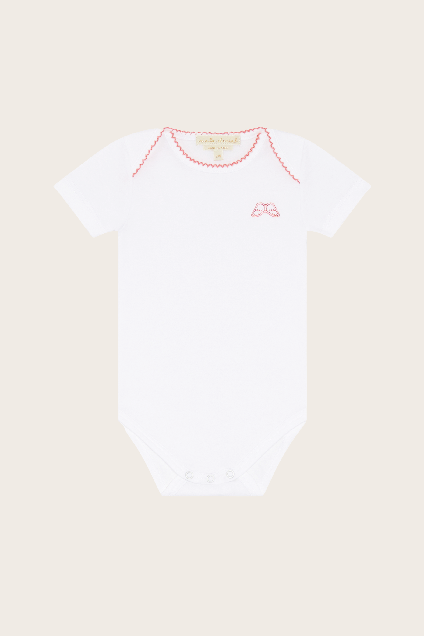 Made from the softest pima cotton, Marie-Chantal’s set of seven short-sleeve picot onesies comes in seven beautiful shades of pink - one for each day of the week. Each piece features the brand’s signature embroidered Angel Wing design and delicate matching picot trim, making them perfect for layering. Designed to slip easily over the head with convenient snap fastenings along the inseam, this set combines comfort with timeless charm. Also available for baby boy in blue.